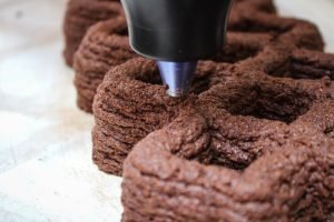Después de realizar varios experimentos para generar una mezcla a base de celulosa, descubrieron que el aserrín experimenta cambios en su estado físico relacionados con la unión y el secado, dependiendo de la máquina de la que se extraiga. Además, la humedad en el biocompuesto favorecía el crecimiento de hongos, por lo que experimentaron con cal y yeso para neutralizarlo. Después de desarrollar varios prototipos, determinaron que el aserrín de las máquinas de calibración y el enrutador CNC tenían las condiciones físicas óptimas para permitir el proceso de impresión 3D.