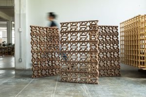 Para determinar las formas de las piezas, se crearon varios prototipos, comenzando con geometrías básicas como círculos, cuadrados y triángulos. Este enfoque ayudó a identificar la geometría más adecuada. Martínez Schulte enfatiza que al probar las diferentes geometrías, se logra una mejor comprensión del material. Como resultado, se vuelve posible definir los tamaños de las piezas, reducir las distancias e identificar dónde es necesario un patrón de relleno.