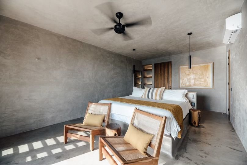 Kimiplaster es un mortero especializado con el que podemos obtener acabados arquitectónicos de gran calidad y belleza. Este nos realza texturas y tonalidades naturales como el Concreto Aparente y el contratipo al acabado Chukum, entre otros tonos.