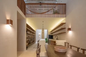 Puertas, mobiliario, carpintería, luminarias, espacios armónicos y con doble altura e incluso los acabados de los baños y cocinas, son cuidadosamente escogidos en concordancia con la esencia propia que las casas esconden como magia maya; y donde el trabajo de restauración consistió solo en redescubrir el concepto de la hermosa Santa Ana, Mérida.